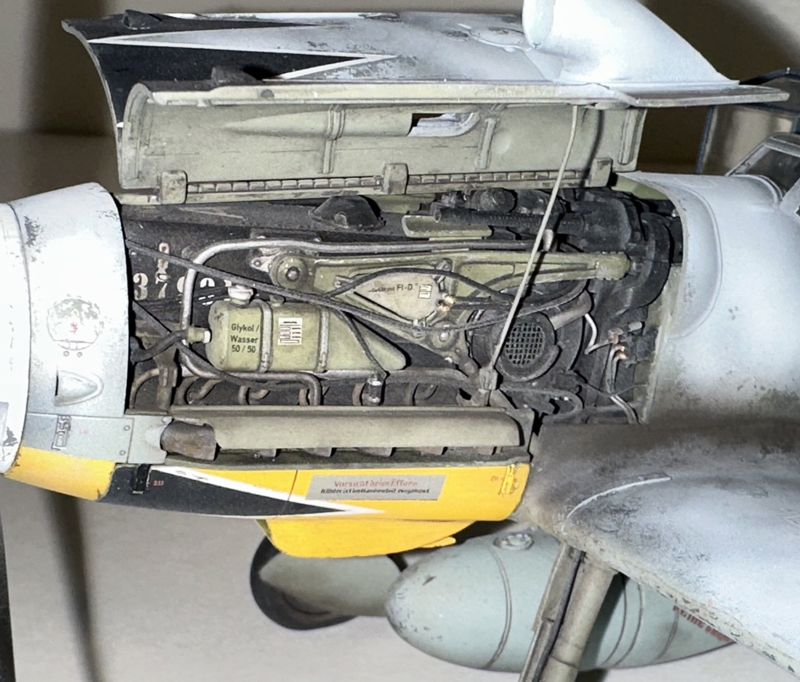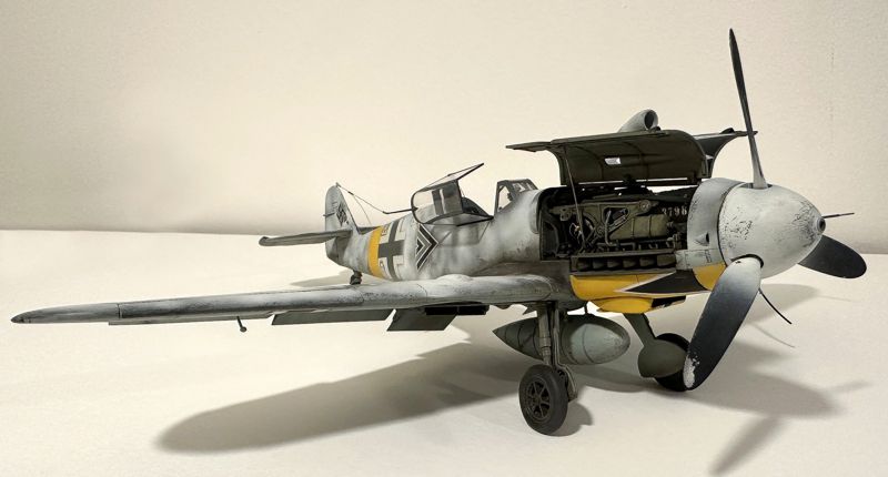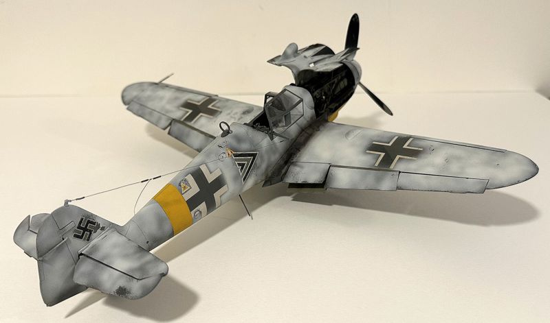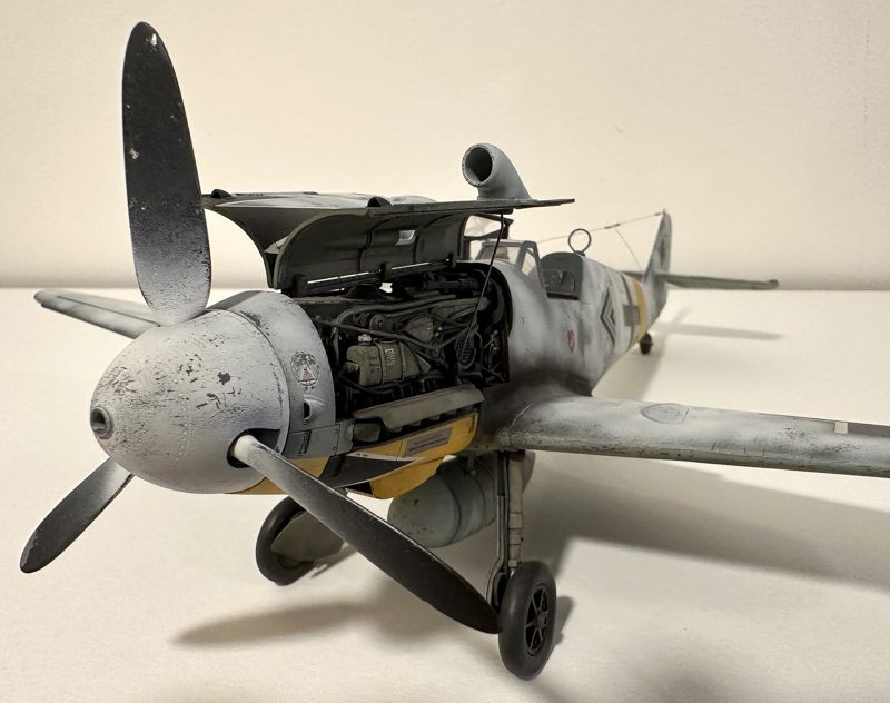 This kit was a pleasure to build. Most every part went together very well and those that did not were due to user error because I sometimes abandon plans midway through the subject; for example, this was going to be a Swiss Bf-109G-6, I think, but decided to change this to one of Erich Hartmann's rides. I know this is a tired subject, but I'm impressed with the pilot's accomplishments and I was intrigued by the application and subsequent wearing of the winter camouflage.
