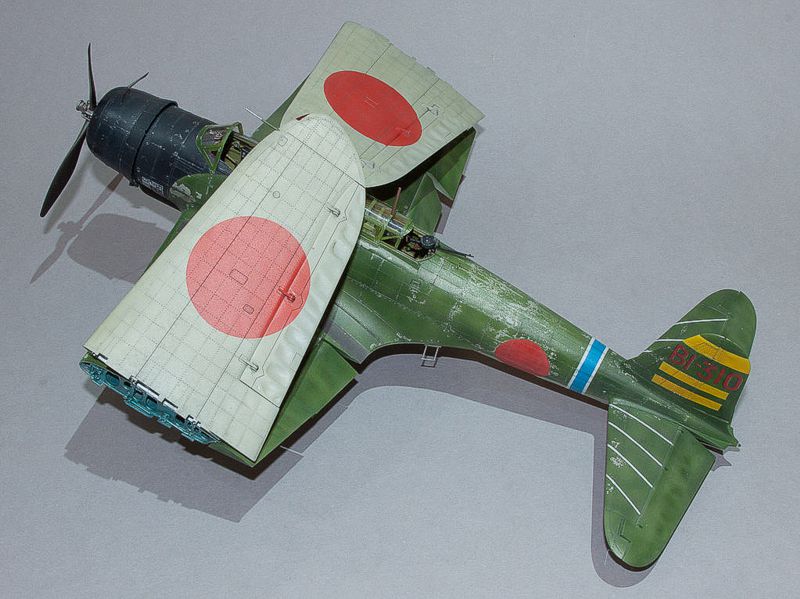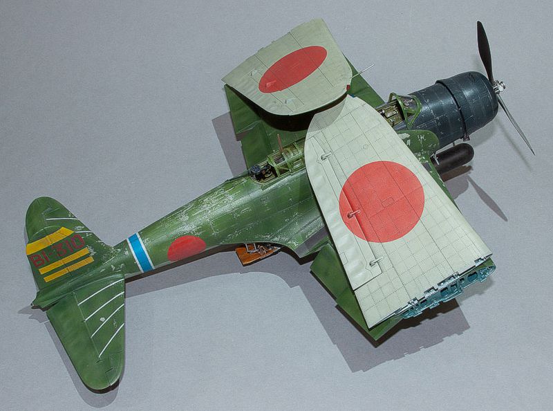 The folded wings actually don't cover up too much of the cockpit - the three openings for crew entry into the cockpit for the Kate are quite small anyway but you can still see into the gunner's station and the front cockpit. It's just the radio operator's station that's not too visible. I actually preferred to have the wing fold detail on display. Again, the three rows of ribbing on each wing section gives a really lovely sense of depth.