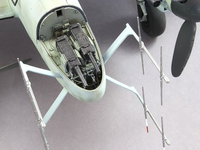 I did a significant amount of scratchbuilding making the compressed air systems for the nose mounted 30mm cannons and the 20mm Schräge Musik, all the electrical lines for the interior electronics, junction boxes, the rollover protection structure, the undercarriage hydraulics and the undercarriage door closure system.