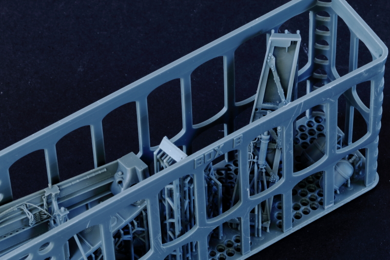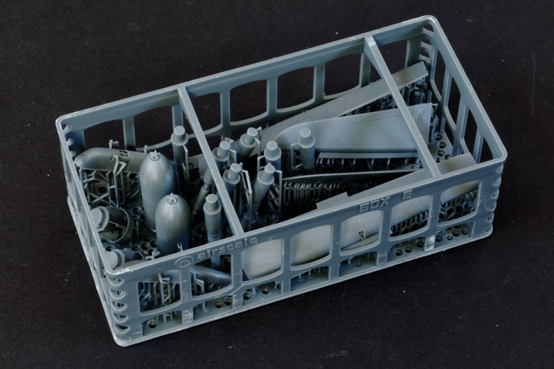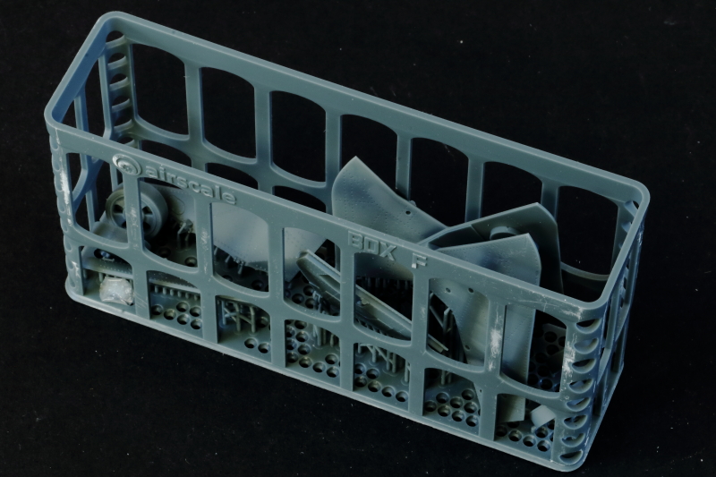 Compared to the Defiant that was released earlier this year, where the main components are all 3D printed, with just the clear parts injection-moulded, this kit takes a big step forward in sophistication (and costs to Airscale) with the main airframe components provided as injection-moulded parts. These parts look excellent in the box - and, although I believe the parts in this particular reviewers box are test shots, they exhibit really fine surface detailing - and clean moulding. The rivet detail is really fine and, as I've found building the Defiant, will look superb on the completed model.
