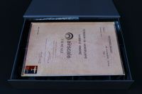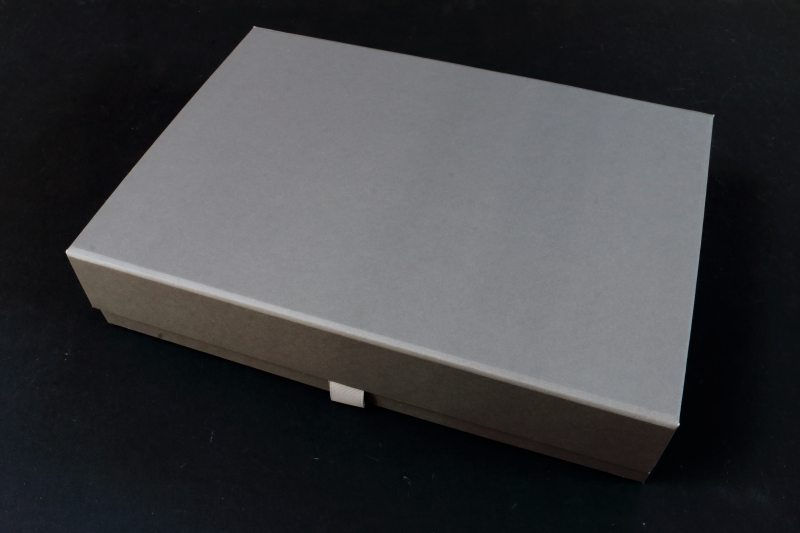 The artwork forms a slip cover over a very sturdy grey box - with a magnetic lid.