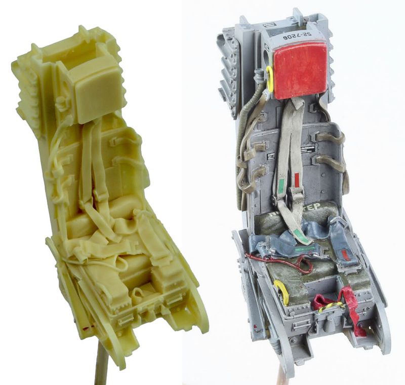 A friend of mine, who is an architect and airplane lover, asked me to build him an aluminium Starfighter for his office. As he knows that I always make my models on scale 1/32nd, I decided to make him an early US Air Force F-104 A built almost straight from the box. As my friend is not too demanding, I used an older ejection seat of a F-104 G.