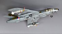 Revell’s model is a fairly easy kit, but the mating of the air intakes with the forward and rear fuselage and wings requires careful attention. The kit is a true tail-sitter, so be sure to put enough lead in the nosecone. The model was airbrushed with DACO enamels. The kit’s decals require careful handling as they are prone to disintegrating. I used KMC’s cockpit. National markings and squadron badge are by Dutch Decal, the registration number is by Maketar custom masks. Sidewinders are Eduard’s AIM-9Bs, the pitot tube is Master’s. As the main undercarriage legs are fairly wobbly, you may consider replacement by a metal version.